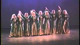 Anna Djanbazian's Persian-Armenian heritage, love of design and nature influence her themes and choreography. Sarve Kashmir reflects the style of Persian dance usually performed in homes, on the street or in courtyards. The barefoot performers, laden with jewelry portray a group of women selling bread on the street. Interlace is a traditional Armenian dance based on the structural designs seen in Armenian churches from the 4th to 17th century. Lessons outline the Persian Cinderella story from the time of Marco Polo, Star Map dances, and movement studies based on architectural forms. The universal themes of Transformation, Enduring Values and The Human Family underlie the ideas throughout.